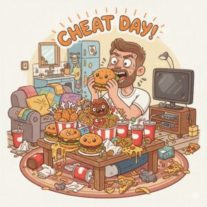 途中からイライラが増え、「なんで俺こんな生活してんの?」ってなり、最後は暴飲暴食に走って終了wwww