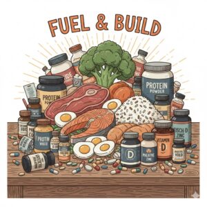 そのうえ、高品質のプロテイン・ビタミン・オメガ3などサプリの山。